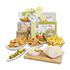 Contents: Pitted Italian Green Olives (1.1oz.), Olive Oil and Sea Salt Crackers (2oz.), Brown Butter Kettle Popcorn (5oz.), Amaretti Cookies (0.4oz.), Spreadable Brie Cheese (3.5oz.), Old Fashioned Peanut Brittle (4oz.), Sweet Cravings Snickerdoodle Cookies (2.5oz.), Reusable Wood Cutting Board.